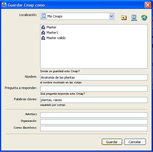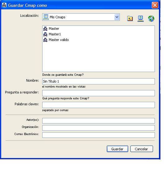 Aparecerá la ventana "Guardar Cmap Como" . Aquí deberá completar los diferentes campos, aunque no todos son necesarios.