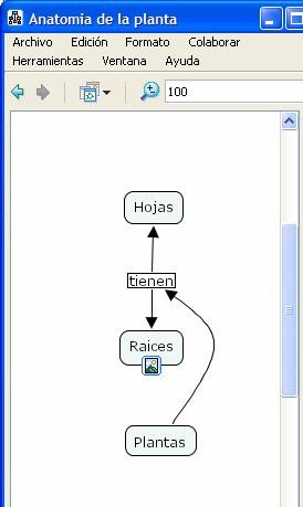 Ahora al mirar el Cmap, las líneas de enlace seleccionadas apuntaran del concepto padre a los nexos de la frase, y de los nexos de las frases hacia los conceptos hijos.