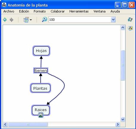 Ahora al mirar el Cmap, las líneas aparecen con puntas a ambos lados. (Puede enlazar conceptos sin utilizar nexos. Con la tecla mayúsculas pulsada, una un concepto con otro)