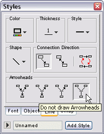 Puede asegurarse que ninguna punta de flecha aparezca en las líneas de enlace. Para hacer las líneas sin punta de flecha, usar la opción que aparece bajo Puntas de las flechas (Arrowheads) como se ve aquí: