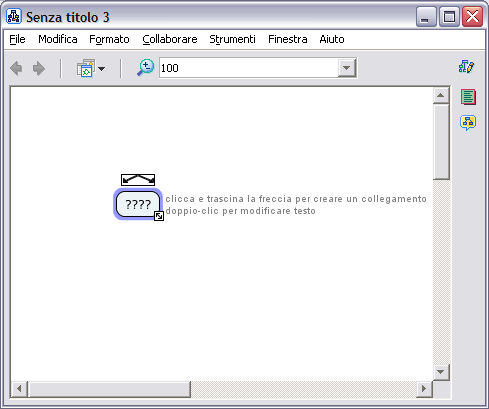 Fare un doppio clic col tasto sinistro in un punto qualsiasi della Cmap (č possibile anche cliccare ovunque col tasto destro e scegliere Nuovo Concetto dal menu che appare. Apparirā una forma con punti interrogativi al suo interno.
