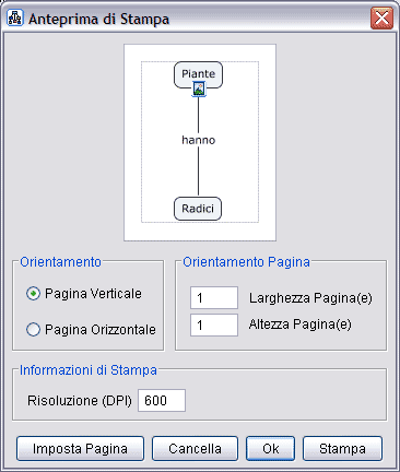 Dalla finestra di Anteprima di Stampa sarà possibile scegliere l'orientazione della pagina e impostare il numero di pagine, in orizzontale e in verticale, su cui stampare la Cmap.