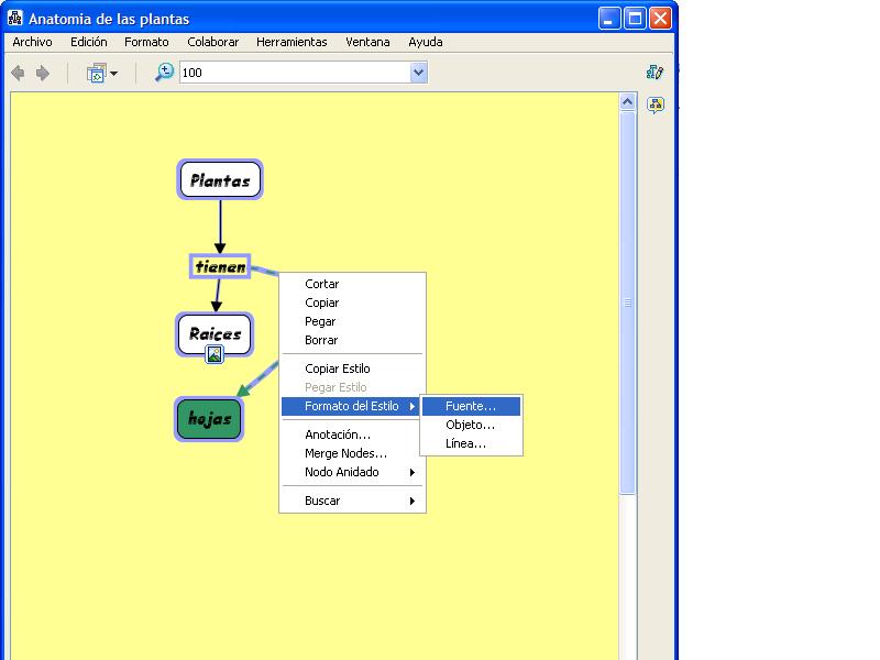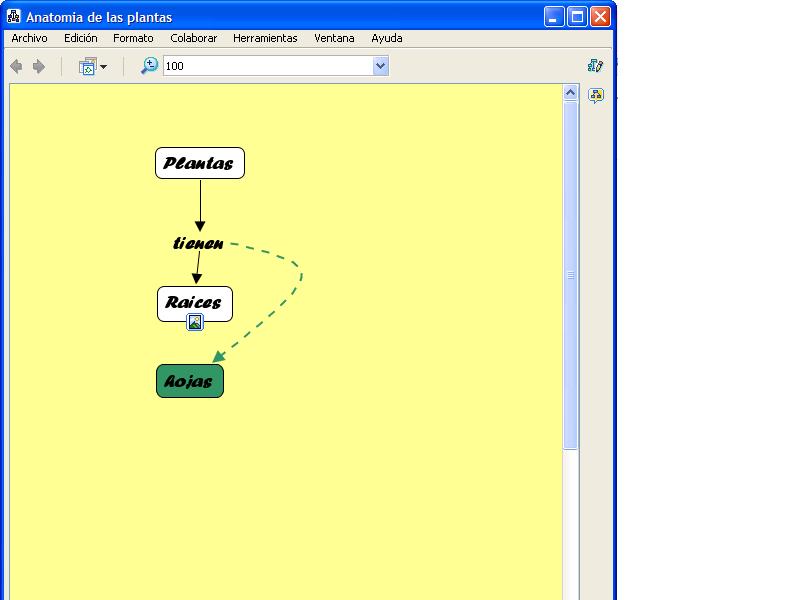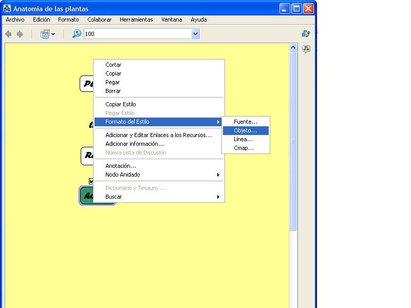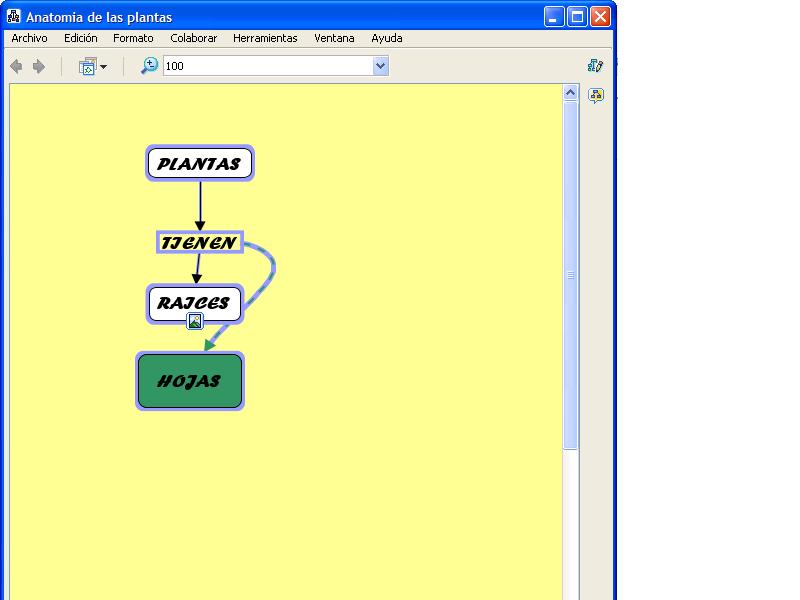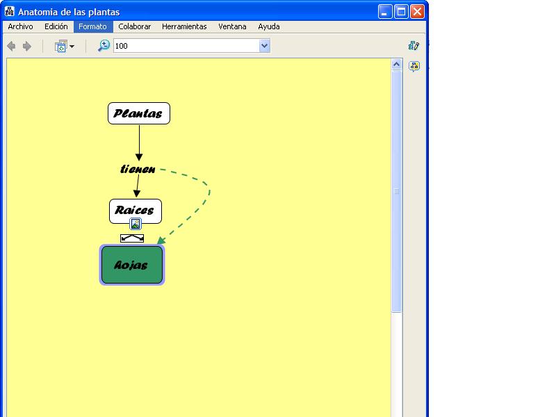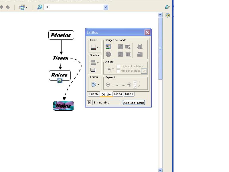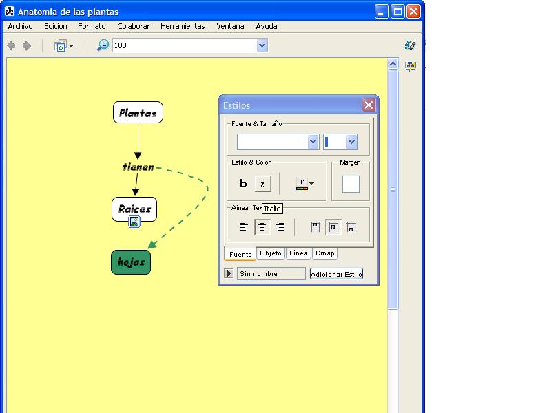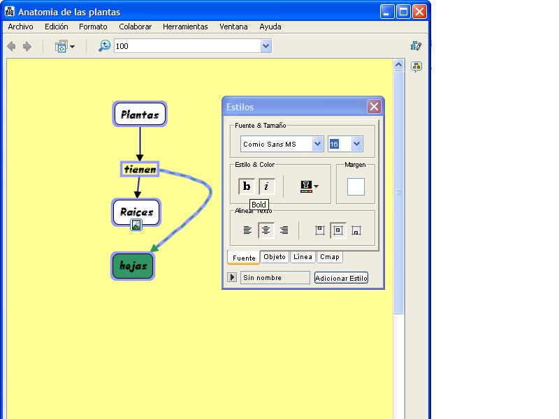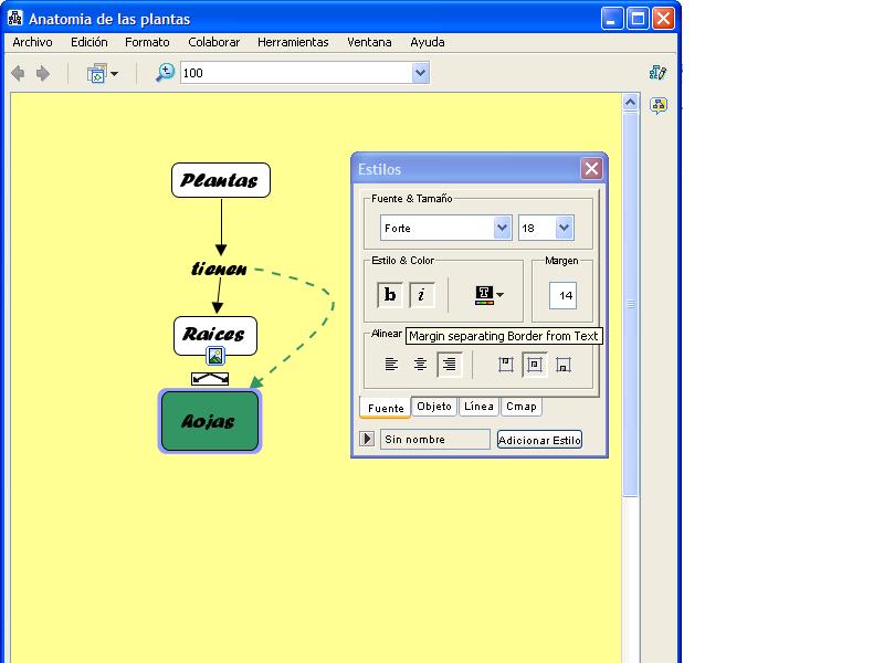 Es posible modificar la posición del texto dentro de la caja del concepto usando una combinación de herramientas del CmapTools. Por ejemplo, si ha seleccionado un concepto que tiene de fondo una imagen.