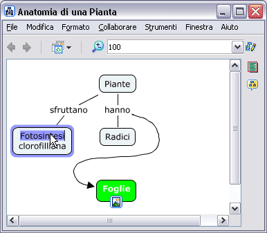 di testo da modificare, all'interno del nodo (non sono possibili selezioni