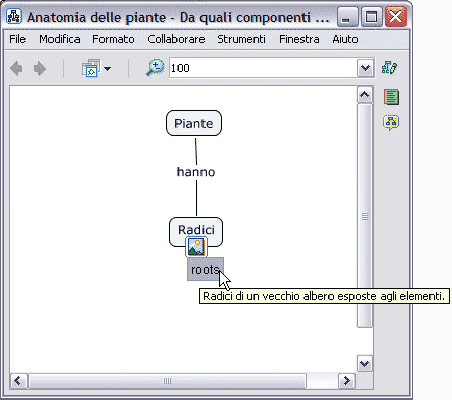 Cliccando col tasto sinistro il titolo della risorsa si aprirā il visualizzatore di CmapTools, capace di aprire immagini comuni. In presenza di eventuali risorse grafiche non supportate si aprirā un programma esterno dell'utente.