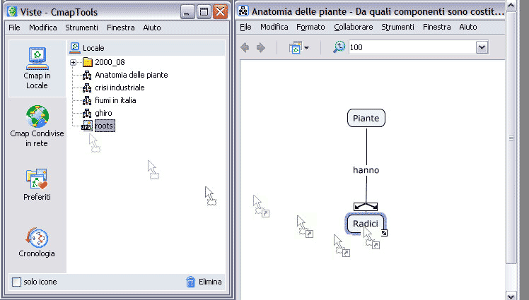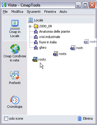Le risorse accessibili da "Cmap in Locale" o da una cartella in "Cmap condivise in Rete", possono essere trascinate in una Cmap.